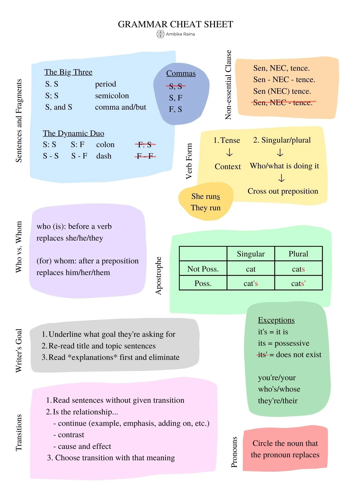 Click to download some samples of my custom guides. ACT/SAT Grammar Cheat Sheet - Text ACT/SAT Grammar Cheat Sheet - Visual ISEE Math Study Guide